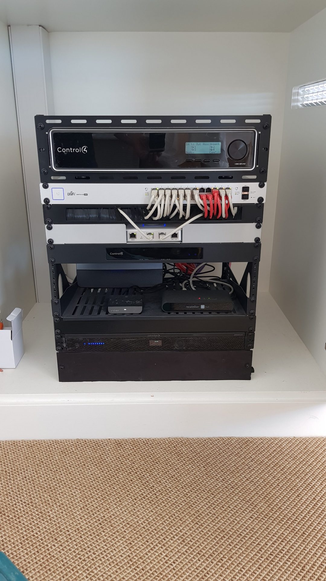 During the next phase we installed a multi-room audio system. This features 5 zones of high quality audio using a 4 zone Control4 matrix amplifier and a Triad single zone streaming amplifier. All played thought discreet Triad R28 in-ceiling speakers.