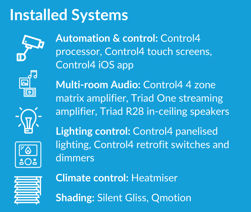 We then moved onto installing a Heatmiser climate control system and integrating it into the Control4 system.